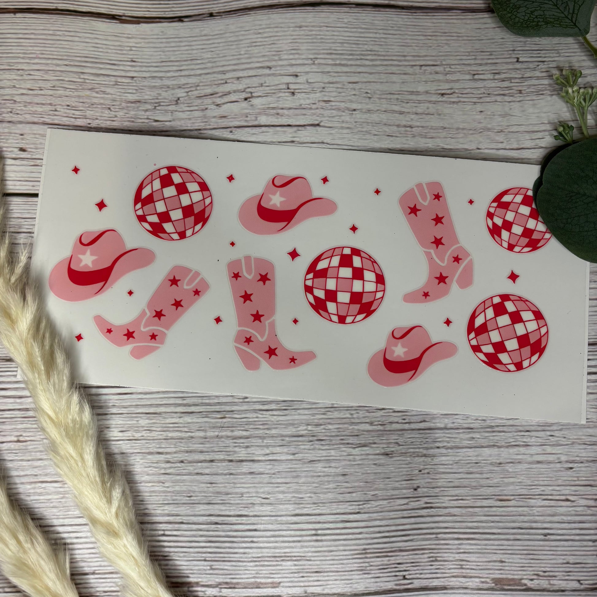 Cowgirl Boots, Disco Ball & Hat - Baby Pink 16oz Wrap
