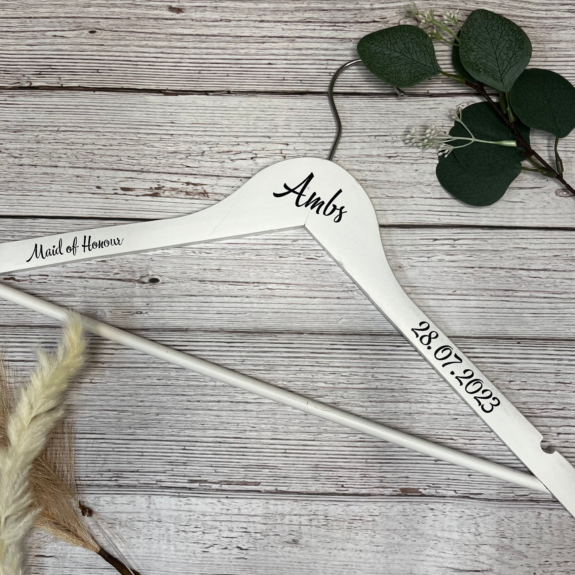 Display your wedding dress in picture-perfect style with our personalised wooden wedding hanger. It can be customised with your name, wedding date, or bridal party title. Perfect for 'getting ready' photos, this thoughtful detail turns your special outfit into a keepsake you'' treasure long after the big day.